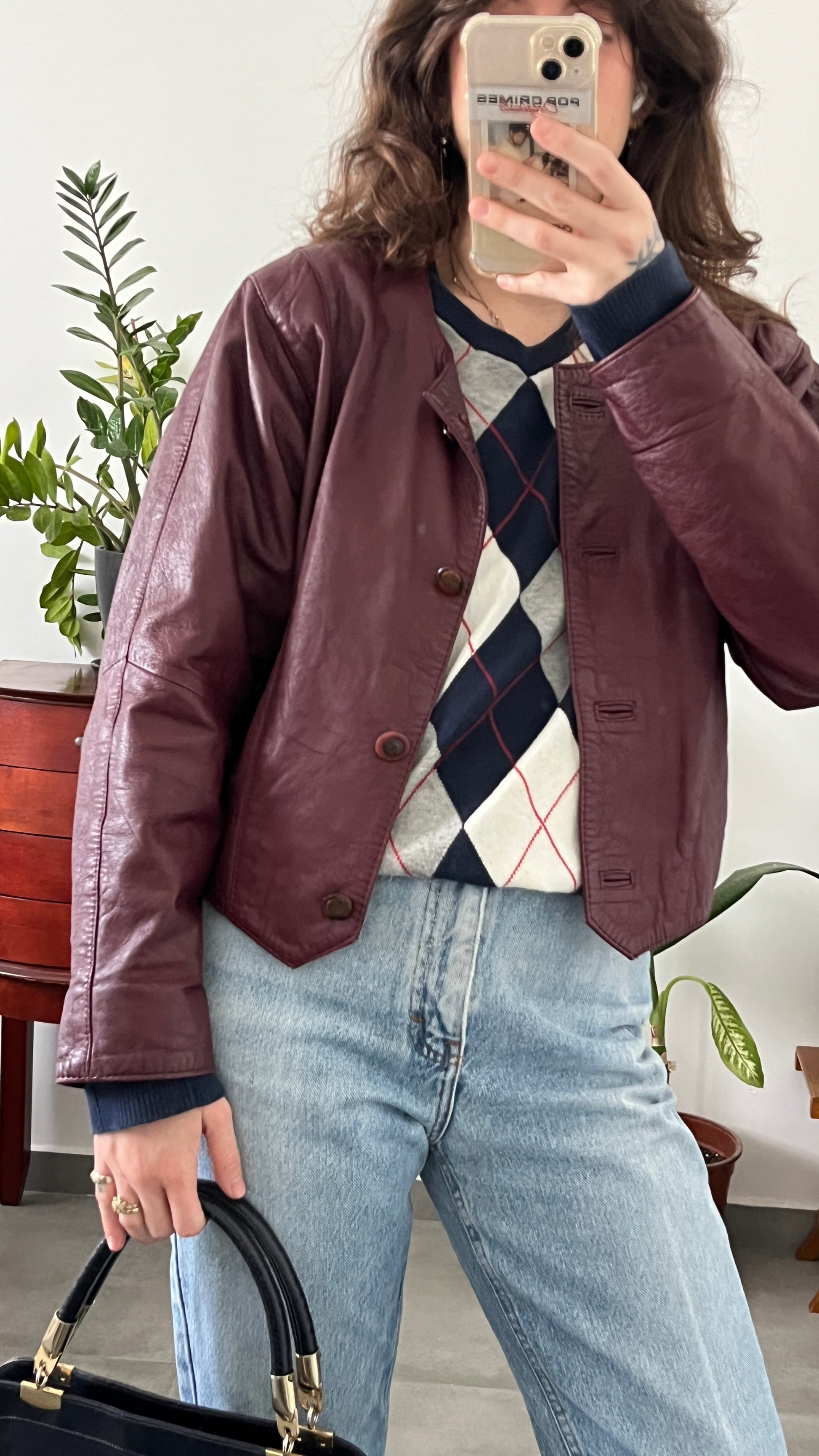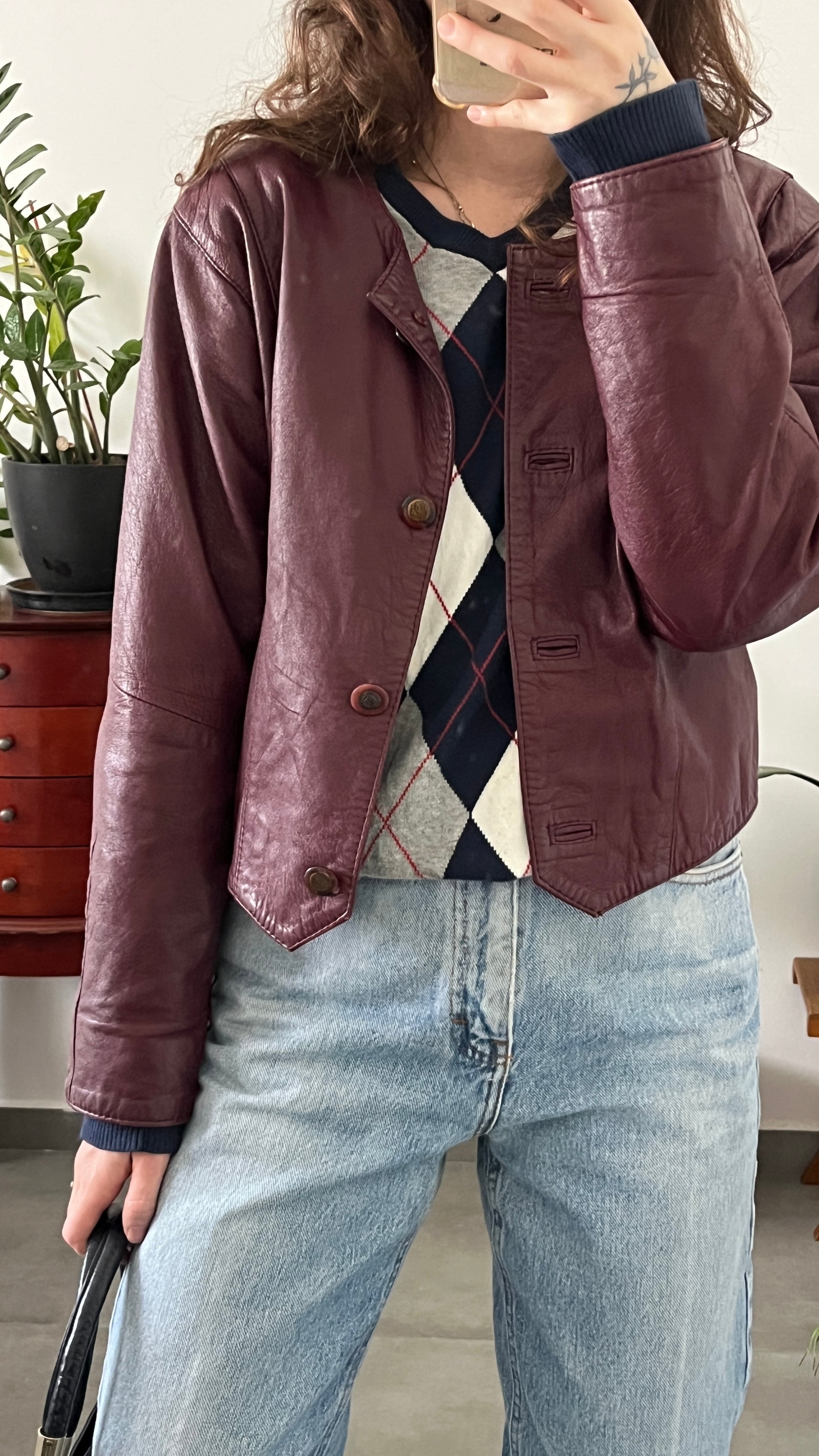 Burgundy Cropped Leather Jacket
