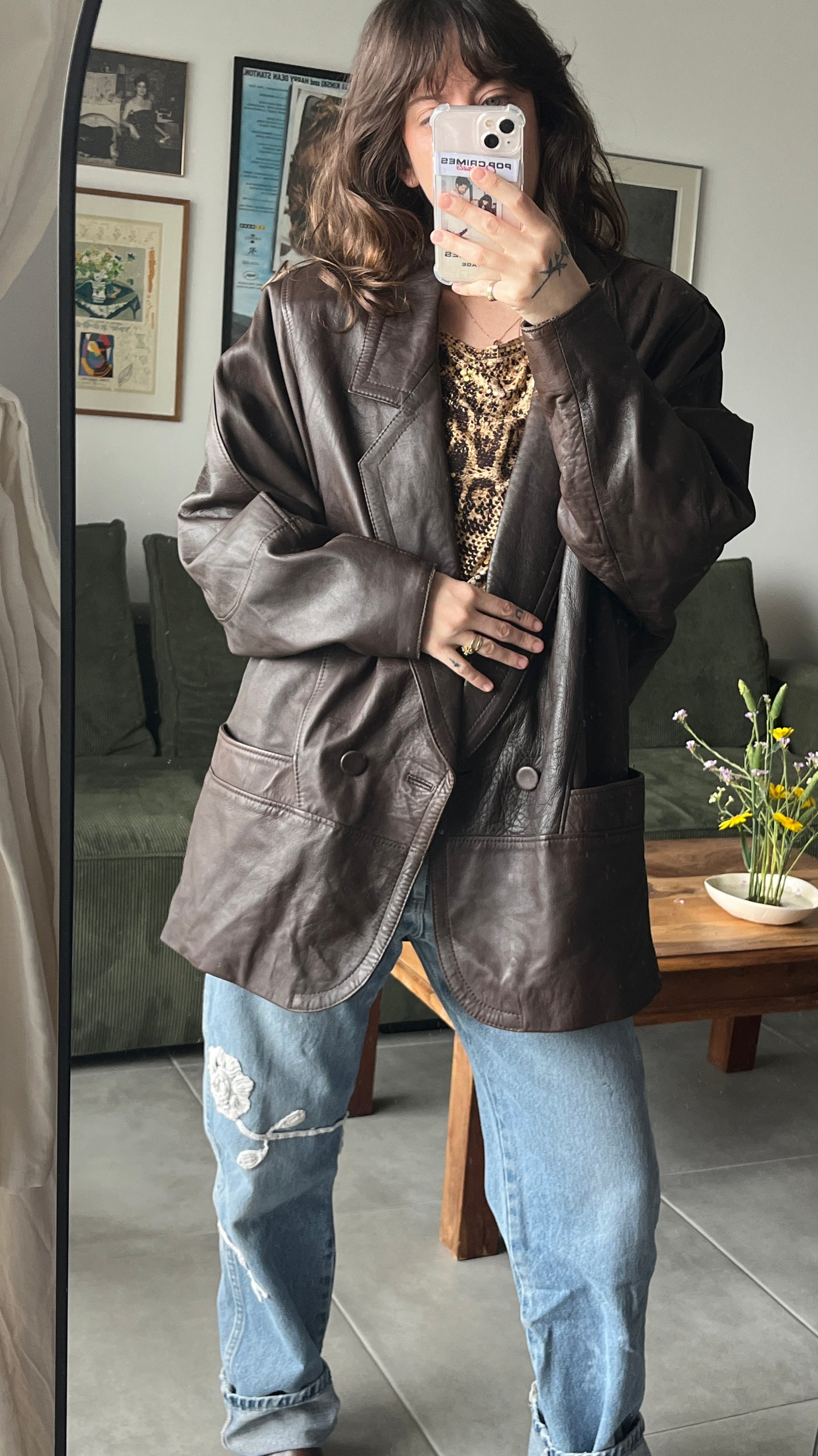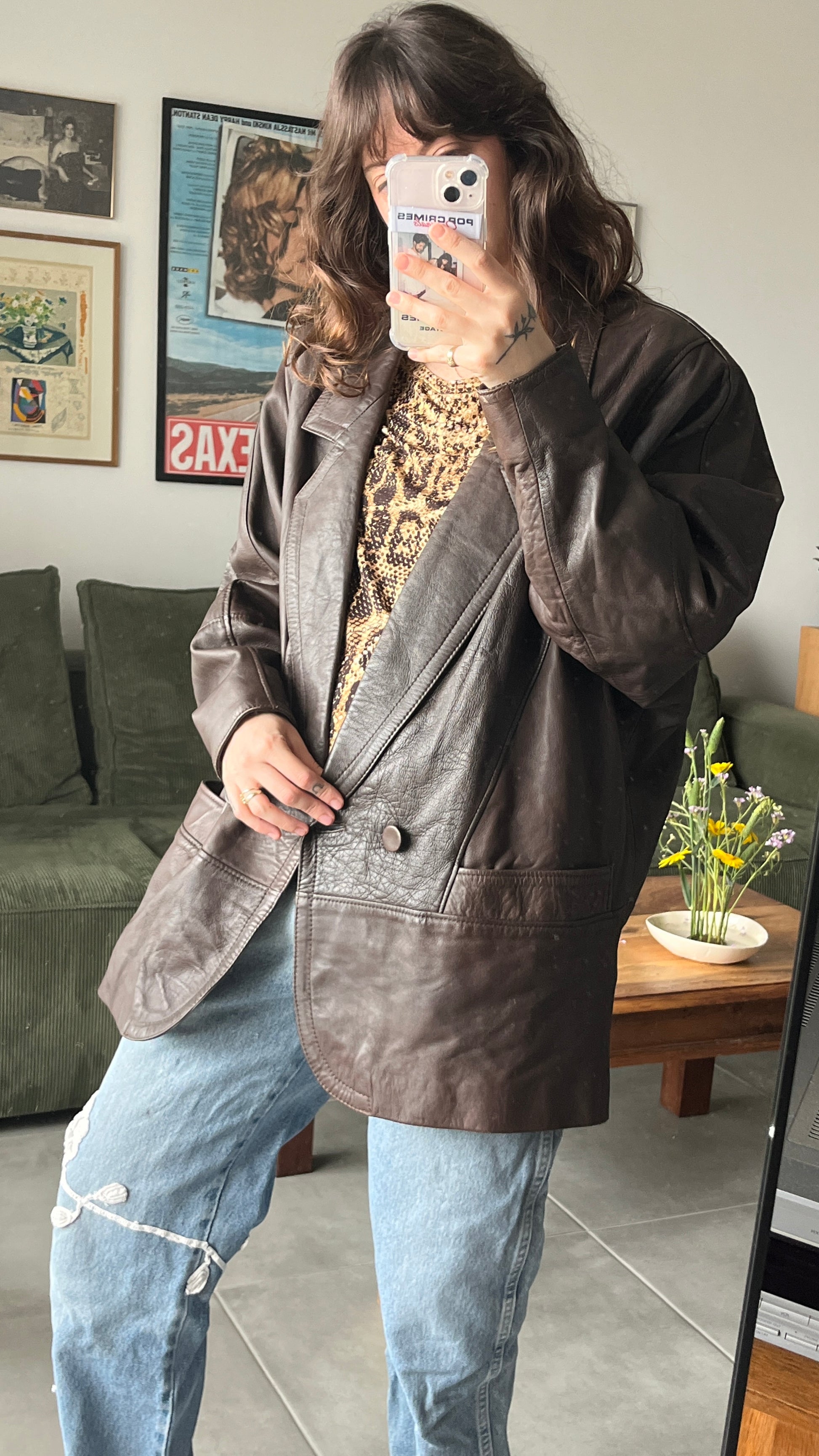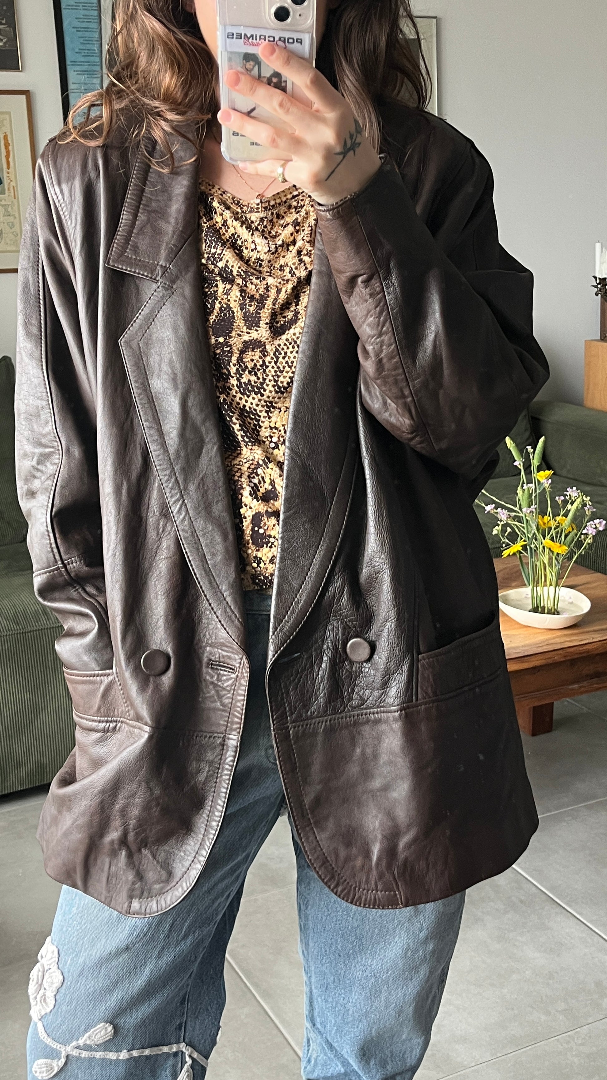 מעיל עור חום שוקולד שנות ה־80