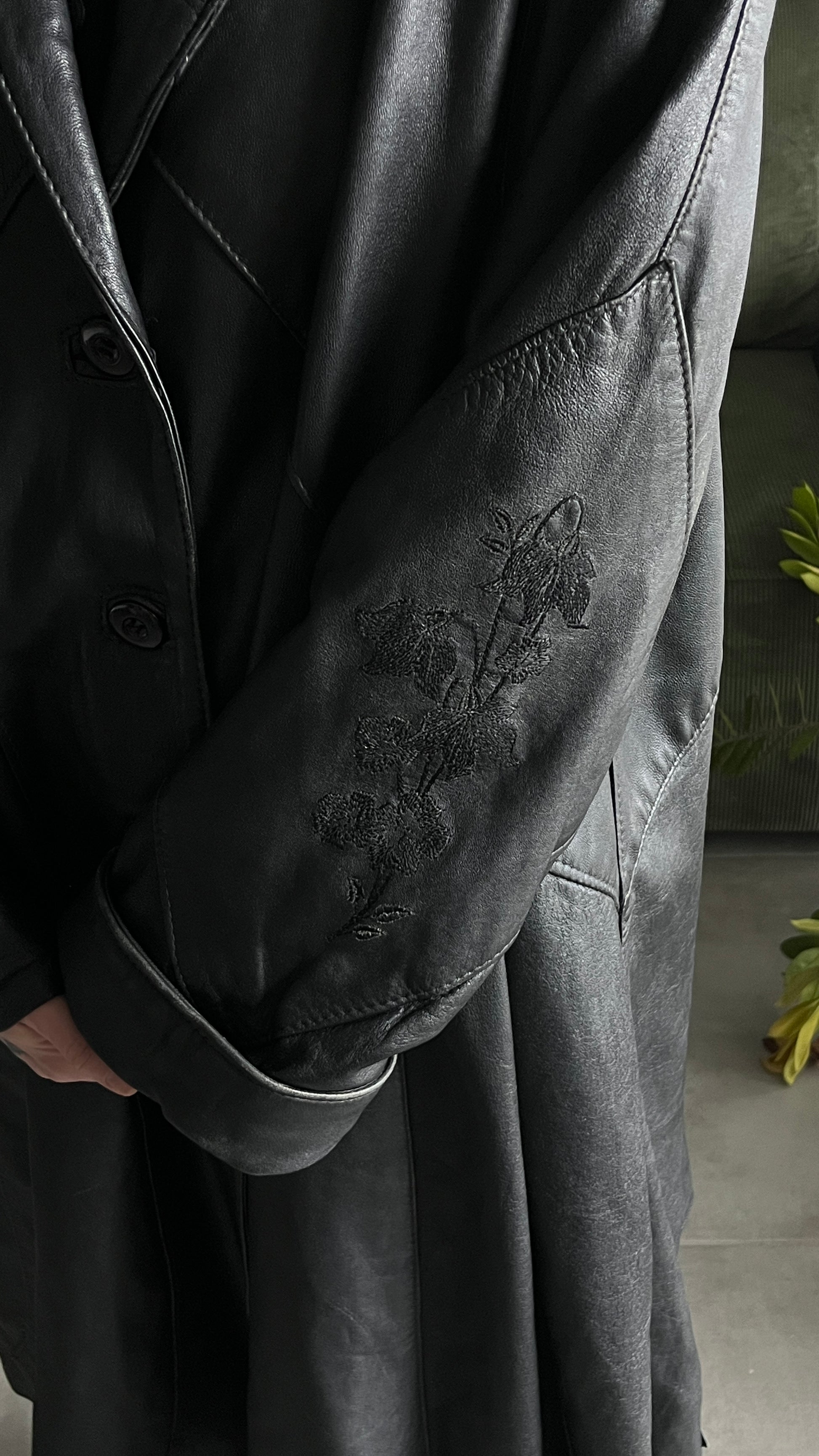 Embroidered Maxi Leather Coat - Artisan Piece