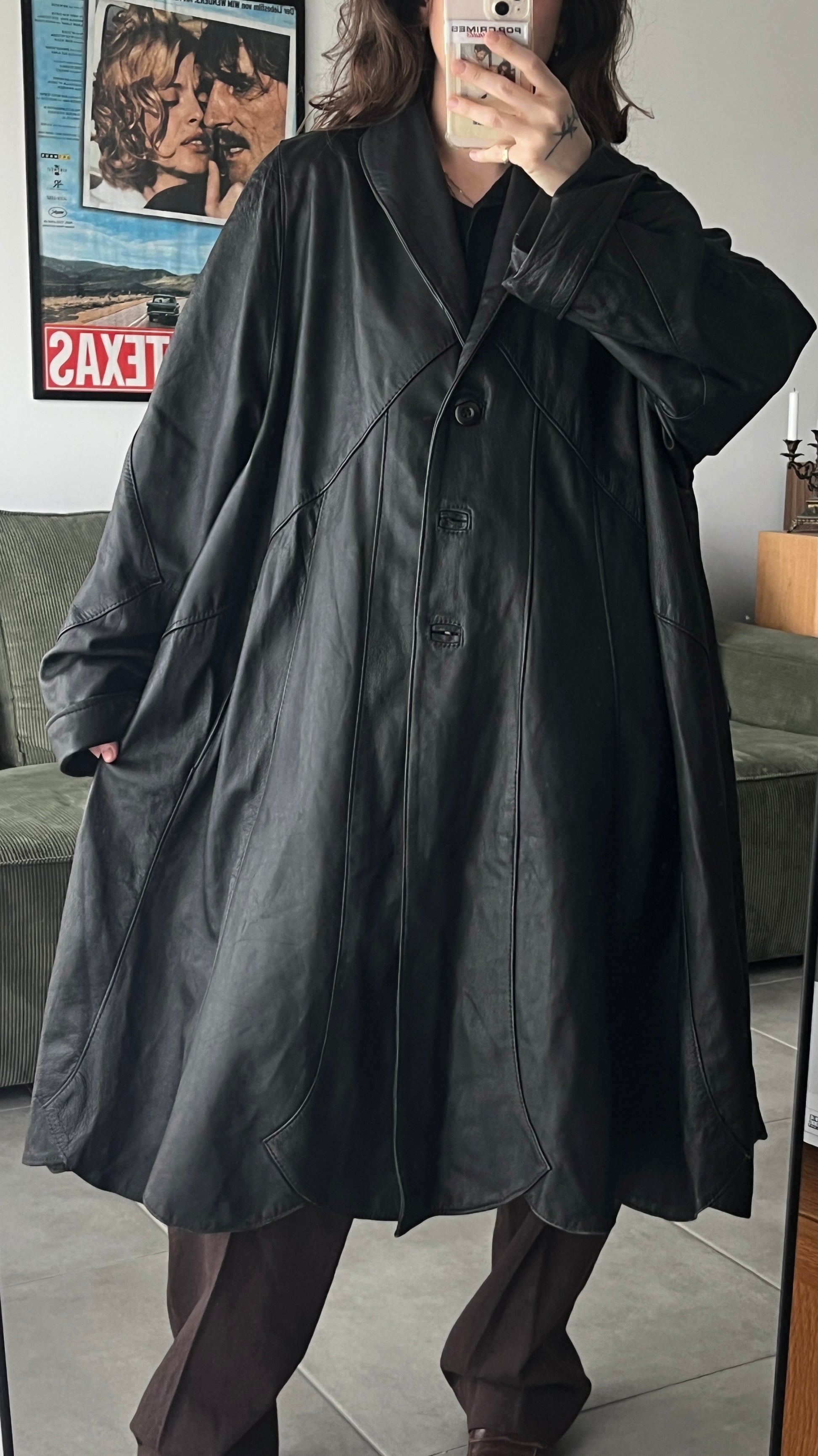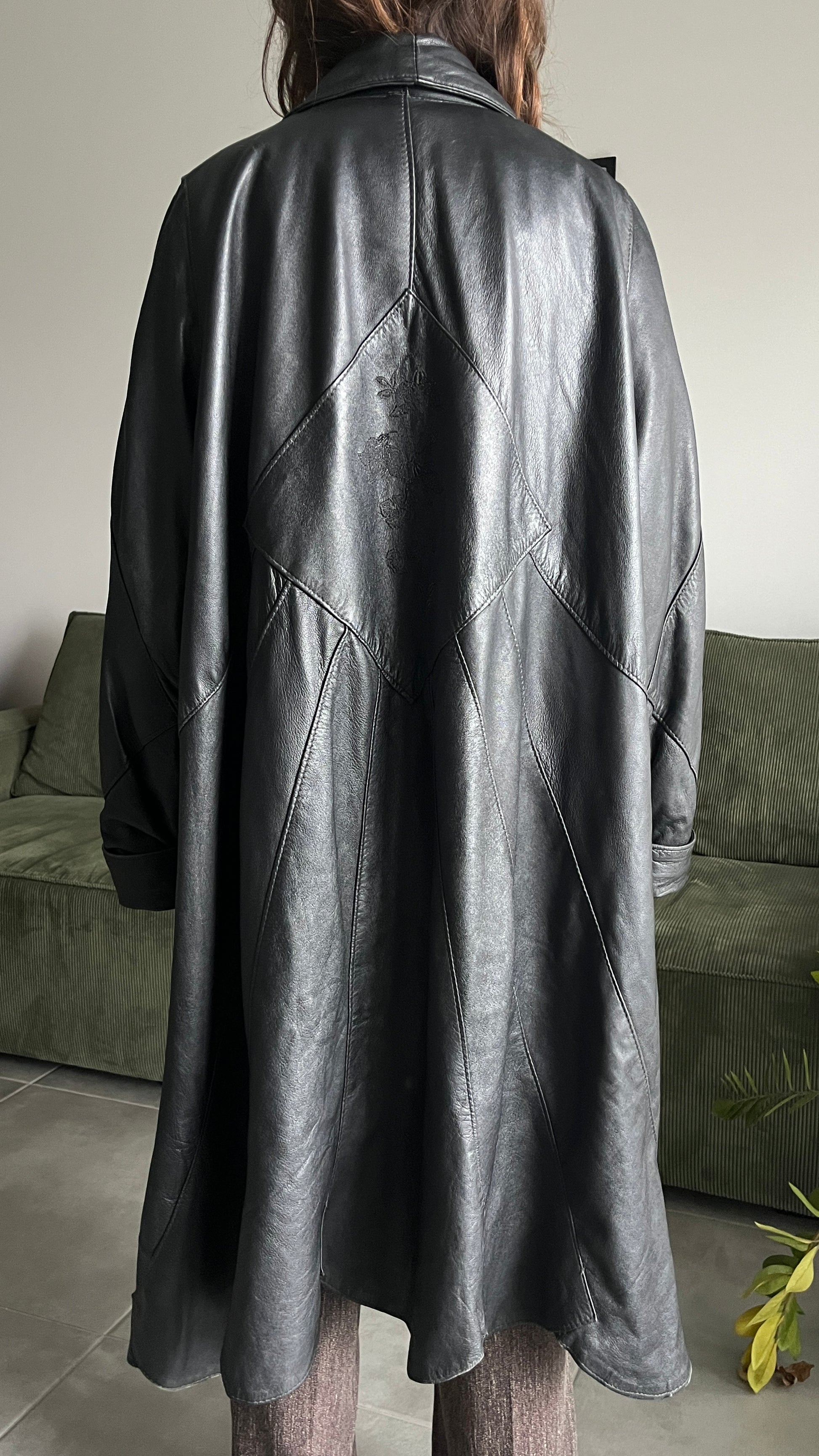 מעיל עור מקסי פנאלים רקום - עבודת יד